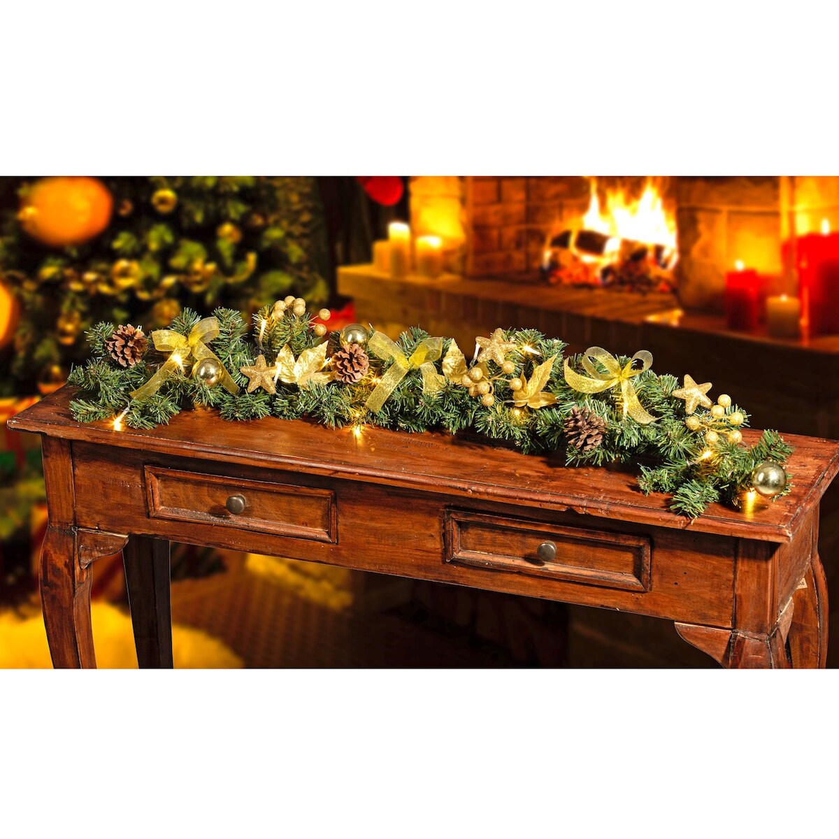 LED Tannengirlande beschmückt Weihnachtsgirlande künstlich Tischdekoration