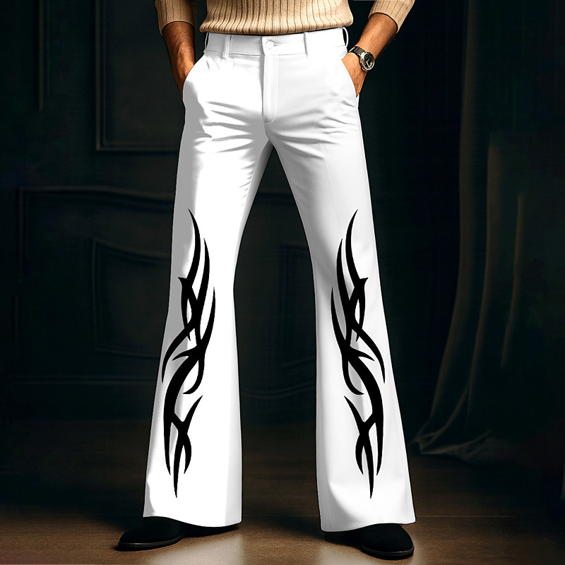 Men's Flame Disco Pants 60s 70s Bell Bottoms Mid Waist Vintage Retro Outdoor Party Casual Side Pockets Flared Leg Pants Trousers Spring Fall 3D Print Black White Red