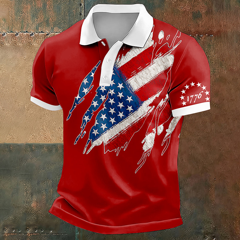 American Independence Day Men's American US Flag Polo Short Sleeve Polo Shirts Lapel Casual Athleisure Daily Wear Festival Outfit 3D Print Buttons Spring Blue Black White