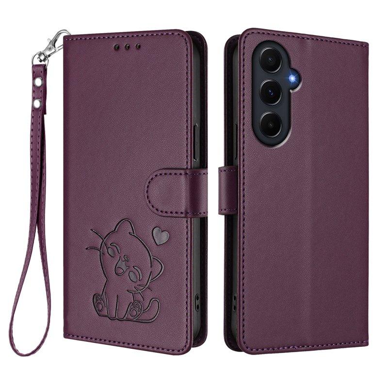 Love Cat Samsung Galaxy A55 5G Plånboksfodral Konstläder - Lila