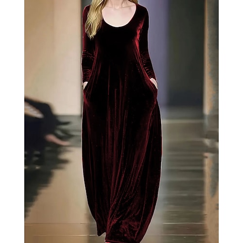 Per donna Abito Lungo Maxi Abito Abito in Velluto Abito da Ballo Vestito da Festa Abito da Cocktail Elegante Moda Festa serale Feste Occasione speciale Vestibilità comoda Semplice Manica Lunga
