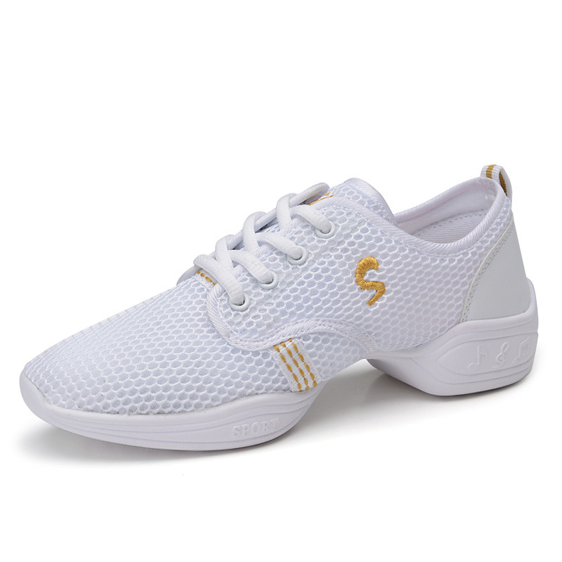 Women's Black Mesh Jazz Dance Sneakers - Lightweight Breathable Lace-Up Shoes for Professional Latin, Ballroom, and Practice Training