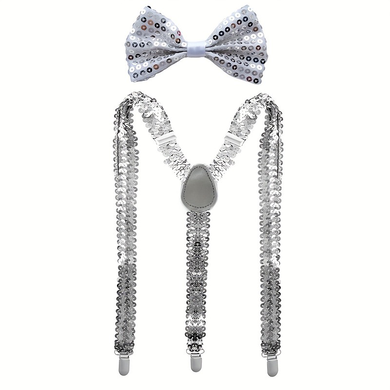 Carnival Costume Disco Carnival Bow Tie Y-Back Suspenders Retro Vintage 1980s Sequins Adults' Men's Halloween Carnival Party Performance Dance Ballet Easy Carnival Costume Dress Up