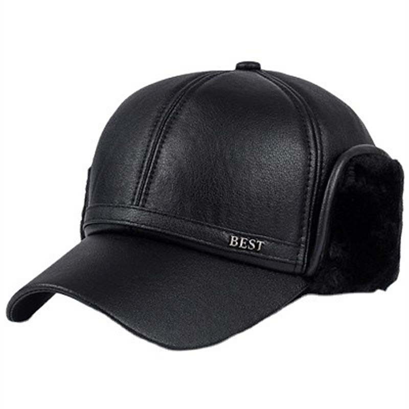 Men's Ear Flap Hat Winter Leather Hat Winter Hats Winter Warm Cap Winter Baseball Cap with Ear Flaps Black Polyester Fleece Fashion Modern Contemporary Daily Wear Date Solid / Plain Color Thermal