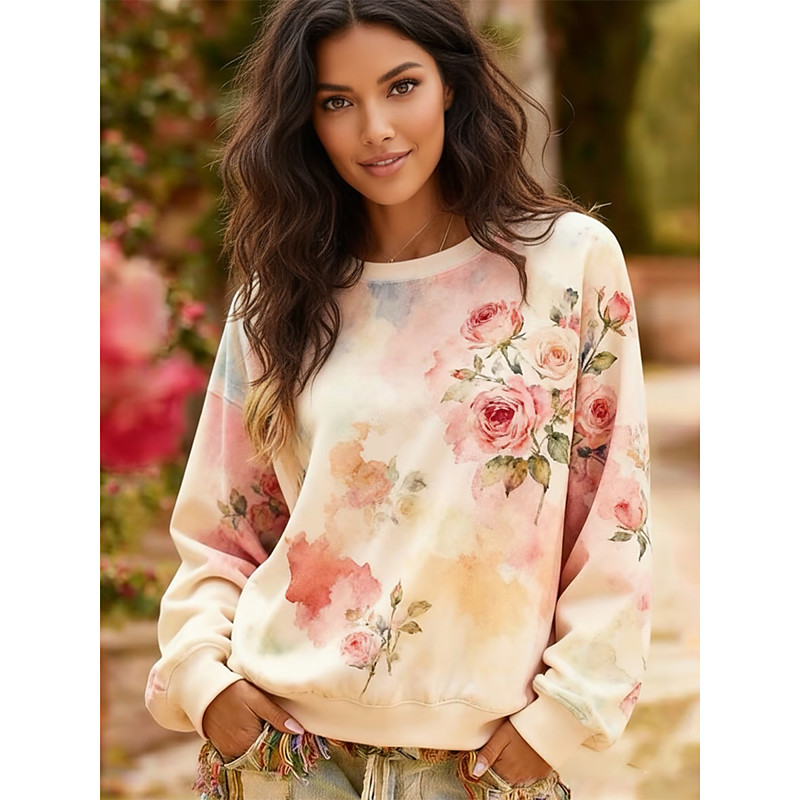 Women's Pullover Sweatshirt Floral Casual Long Sleeve Crew Neck Regular Tops Street Dailywear Casual Pink Spring Fall Winter
