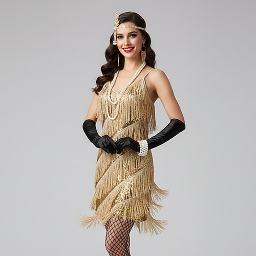 Anni Ruggenti Anni 1920 Midi Abito da cocktail Abito da sera Spalle scoperte Paillettes Sottoveste a gonna Scollo a V Costume Per donna Natale Carnevale Mascherata Cocktail party Adulti Estate