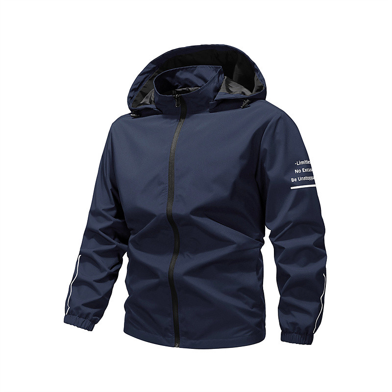 Men's Outdoor Jacket Raincoat Hoodie Jacket Hiking Jacket Vacation Daily Windproof Pocket Fall Winter Letters Fashion Classic Hooded Regular Black Green Light Grey Dark Blue Jacket