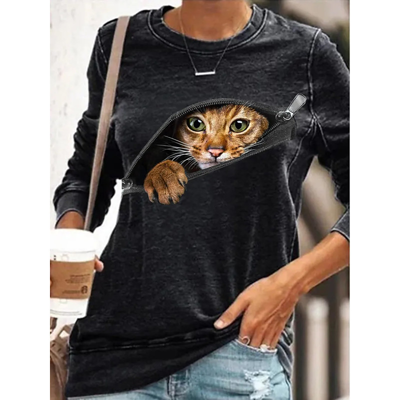 Women's Pullover Sweatshirt Hoodies Graphic Animal Cat Fashion Casual Long Sleeve Crew Neck Regular Tops Street Dailywear Print Blue Black Purple Green Grey Spring Fall Winter