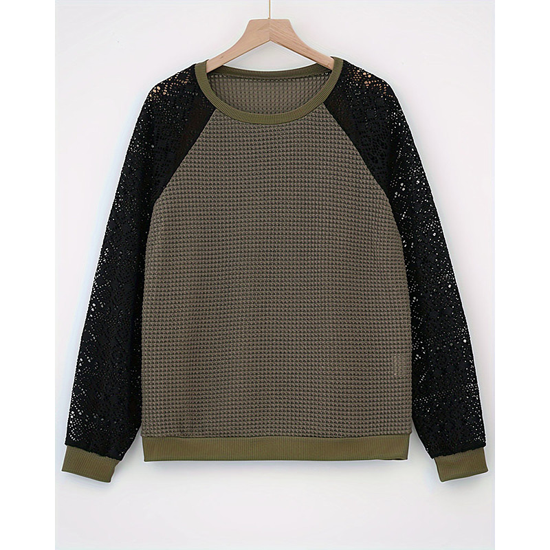 Women's Blouse Solid Color Fashion Casual Long Sleeve Crew Neck Regular Tops Daily Going out Weekend Patchwork Eyelet Black White Army Green Light Grey Spring