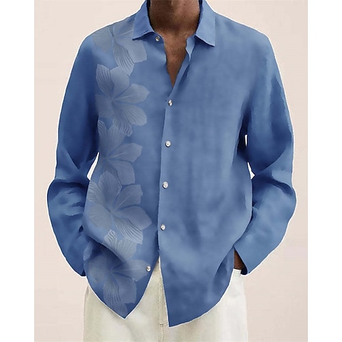 Herren Hemd Sommerhemd Freizeithemd Strandhemd Knopfhemd Schwarz Blau Kaki Beige Leicht Blau Langarm Grafik Gestreift Revers Urlaub Hawaiianisch Button-Down Bekleidung Polyester Mode Lässig Bequem