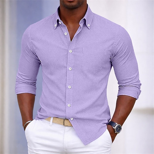 Per uomo Camicia Camicia elegante Camicia button-down Semplice Casuale Quotidiano Viola Manica Lunga Collo ripiegato Tutte le stagioni Abbigliamento Patchwork