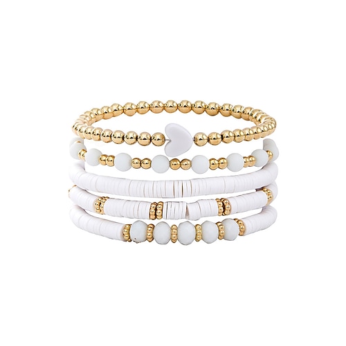 set di braccialetti boho con perline acriliche da donna, braccialetti elastici multicolori con ciondolo a cuore, braccialetti leggeri impilabili a strati per regali di San Valentino e da indossare tutti i giorni