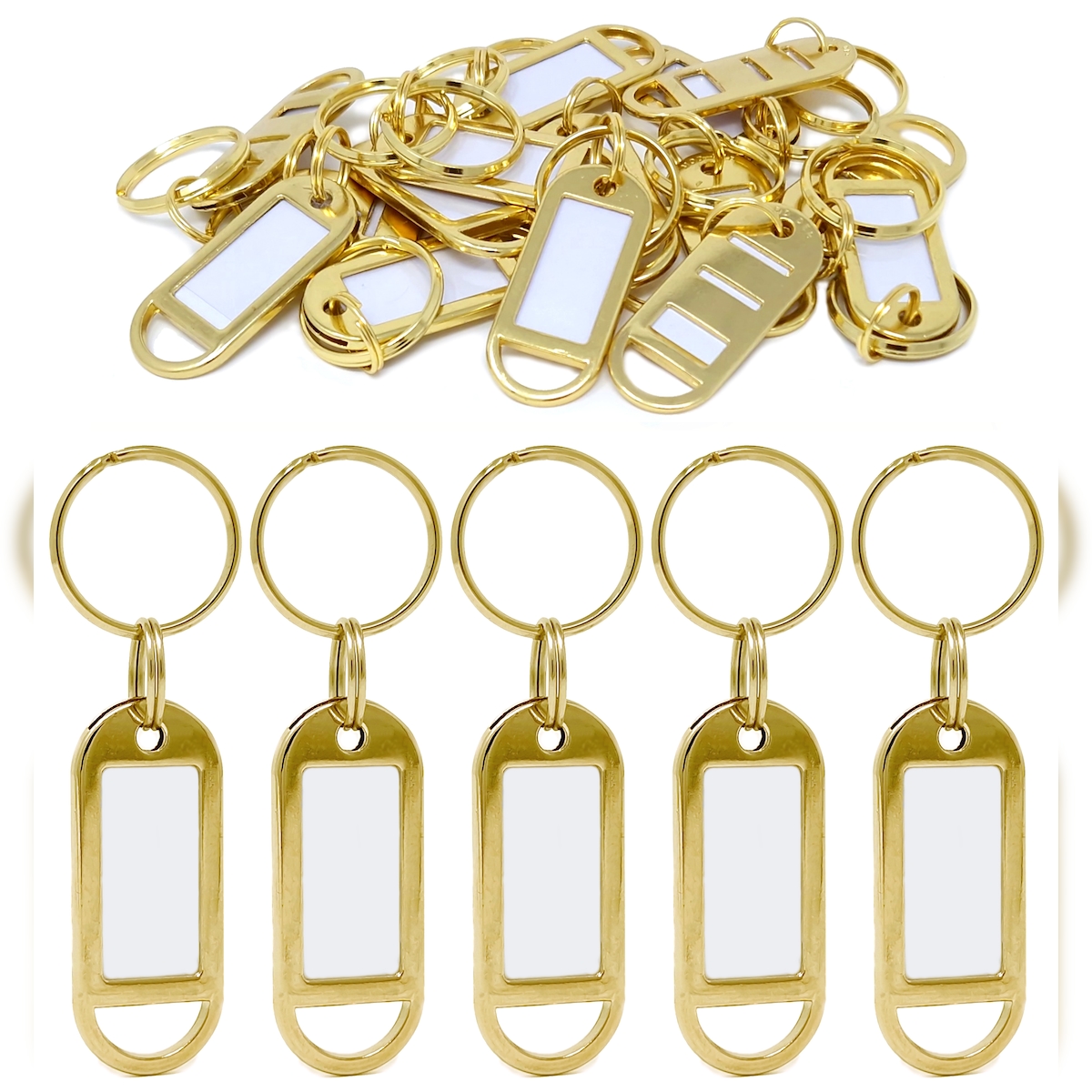 Key Tags Schlüsselanhänger aus Metall mit beschriftbarem Etikett - 10 Stück Gold - Hochwertig und extrem stabil