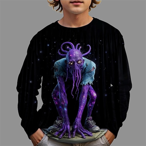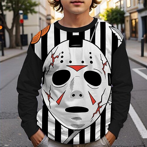 Halloween Jungen 3D Grafik T-Shirt Langarm Frühling Herbst Mode Basic Kinder 4-12 Jahre Rundhalsausschnitt Outdoor Lässig Täglich Normale Passform