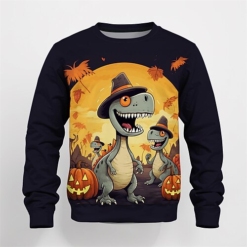 Halloween Jungen 3D Cartoon Kürbis Dinosaurier T-Shirt Langarm Frühling Herbst Mode Basic Kinder 4-12 Jahre Rundhalsausschnitt Outdoor Lässig Täglich Normale Passform