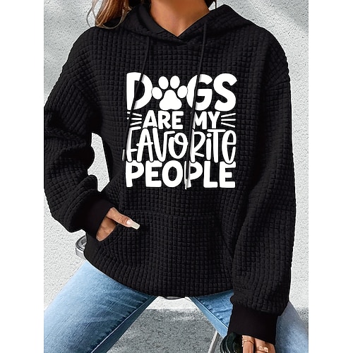 Per donna Felpe con cappuccio Grafico Lettera Casual Manica Lunga Con Cappuccio Top Regolari Streetwear Abbigliamento Quotidiano Casuale Tasca Stampato Nero Grigio Autunno Inverno
