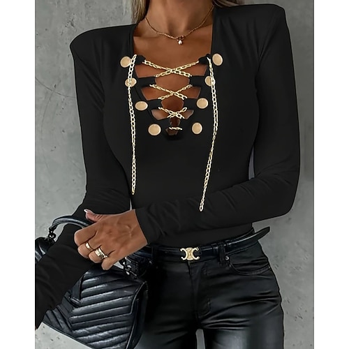 Per donna Blusa Tinta unica Elegante Casual Manica Lunga Scollo a V Top lunghi Quotidiano Cerniera Bottoni Nero Vino Viola Grigio Primavera Autunno Inverno