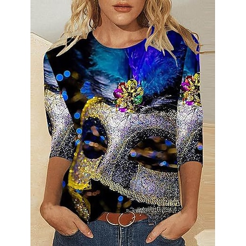Maglietta da donna Carnival Graphic Fashion Casual a maniche lunghe colletto rotondo top regolari stampa quotidiana fine settimana blu nero viola estate primavera autunno