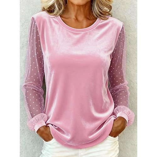 Per donna Velluto Elegante Essenziale Manica Lunga Top Regolari Blu Nero Rosa Vino Oro Autunno Inverno