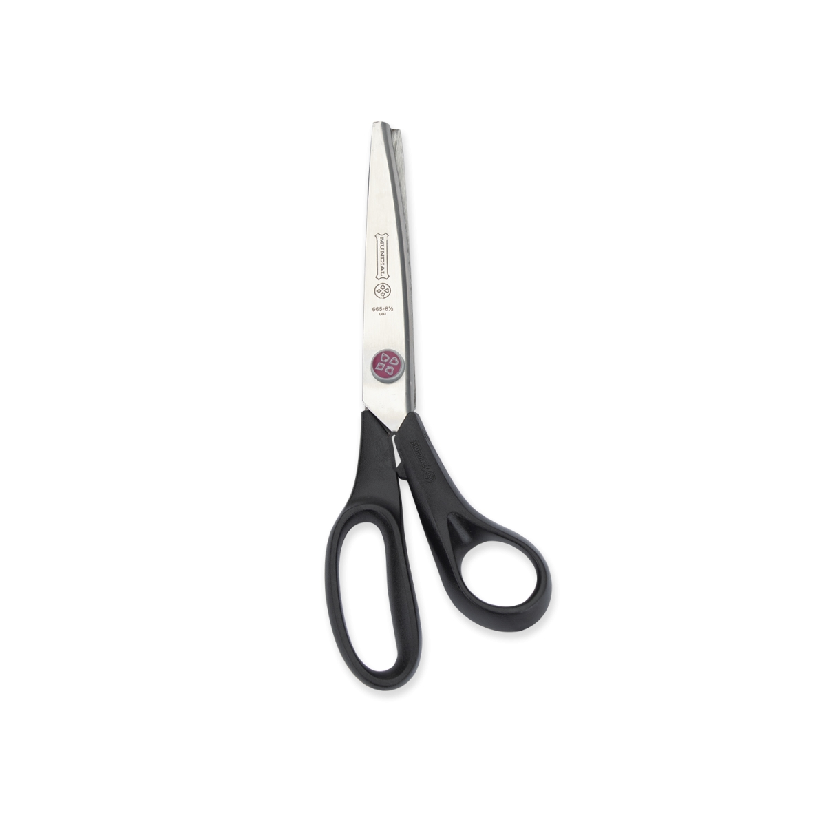 MUNDIAL, Schneiden Schere, (665N-8.1/2), 21.6CM, Rote Spitze, Glatte Kante, Schwarz, Thermoplastisches Harz und Edelstahl.