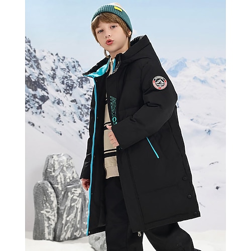 Kinder Jungen Daunenmantel Kapuzenjacke Daunenjacke Oberbekleidung Buchstabe Langarm Tasche Mantel Outdoor Täglich Basic Schwarz Rote Blau Herbst Winter Ab 4 Jahren