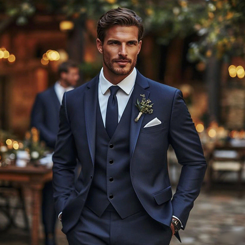 Men's Wedding Wedding Suits Notch Lapel Navy Blue Formal Solid Colored Standard Fit 3 Piece