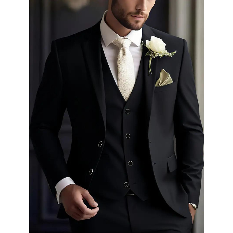 Men's Wedding Business Party Suits Notch Lapel Black Burgundy Daily Casual Solid Colored Standard Fit 3 Piece Single Breasted Two-buttons