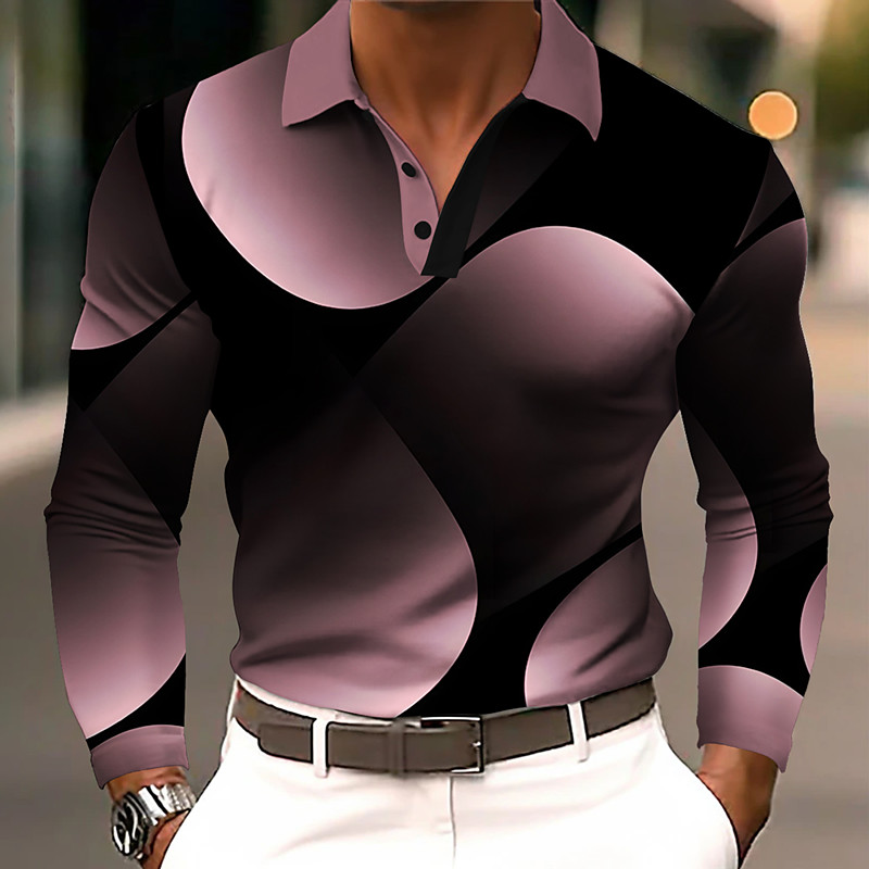 Men's Graphic Polo Shirts Golf Shirt Long Sleeve Polo Shirts Collared Shirts Casual Vacation Wear Rave Wear Party Outfits 3D Print Buttons Fall Winter Dark Pink Blue