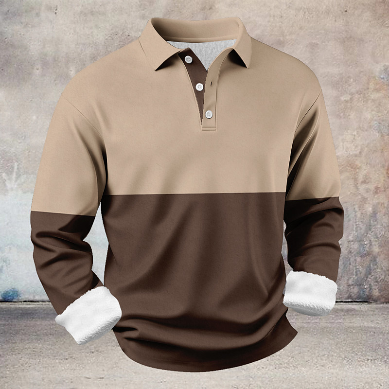 Men's Polo Business Casual Lapel Long Sleeve Comfortable Office Solid / Plain Color Buttons Spring Summer Regular Fit dark brown Robin's Egg Blue Violet Black Light Green Pink Polo