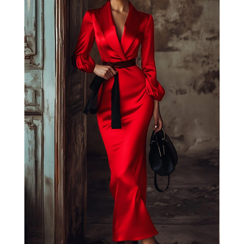 Women's Long Dress Maxi Dress Prom Dress Party Dress Sheath Dress Elegant Fashion Modern Evening Party Party Special Occasion Regular Fit Plain Long Sleeve V Neck Red Spring Fall
