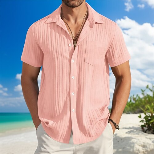 Per uomo Camicia Maglia a coste Camicia casual Camicia con Bottoni Nero Bianco Rosa Rosso Blu reale Manica Corta Semplice Colletto a Camicia Casuale Quotidiano Tasca Frontale Abbigliamento Elegante