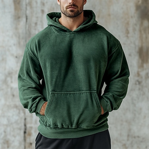 Per uomo Felpa con cappuccio Felpa con cappuccio e zip corta Rosso bordeaux Nero Verde chiaro Rosa Verde militare Con Cappuccio Semplice Tasca a marsupio Casuale Quotidiano Sport Outdoor Vintage