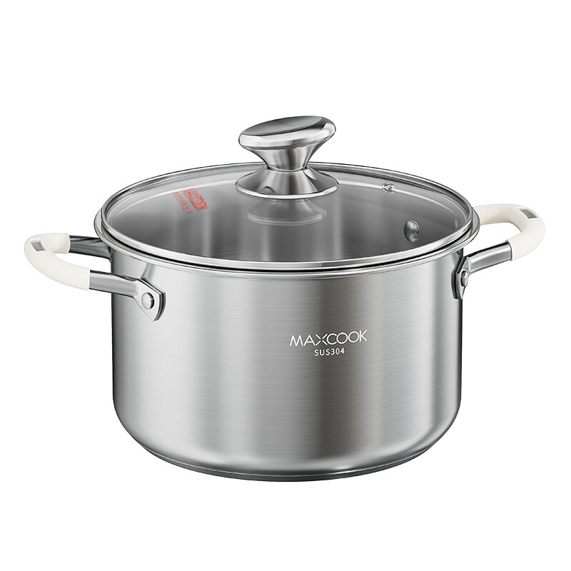 Maxcook 4.3L 304 Stainless Steel Stock Pot (22cm) With Glass Lid and Silicone Handles, Soup Pot for Induction Cooktop, Compatible with All Cooktops MCT1149