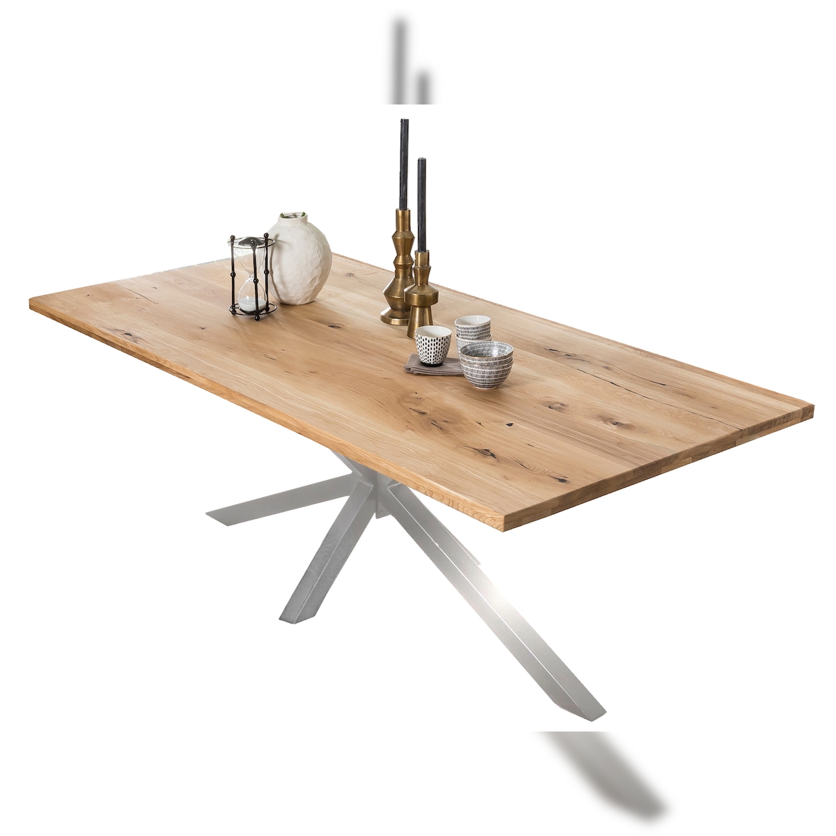 SIT Möbel Esstisch | 240x100 cm | 40 mm Platte Wildeiche natur | Metallgestell antiksilbern | B240xT100xH76 cm | 15243-40 | Serie TABLES & CO
