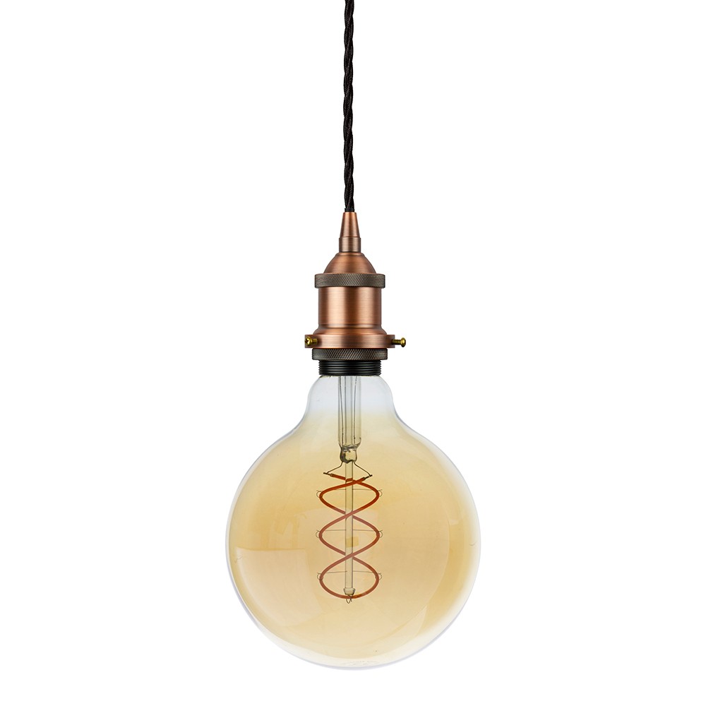 Soho Lighting Matt Antique Copper Decorative Bulb Holder with Black Twisted Cable