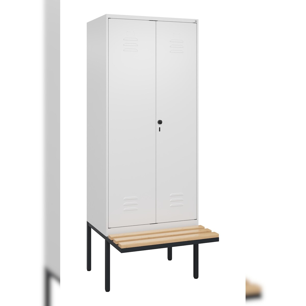 C+P Spind Classic PLUS, schwebender Sitzbank aus Buche 2 Abteile, HxBxT 212x80x82cm, Zylinderschloss, Hellgrau/Enzianblau von PROREGAL