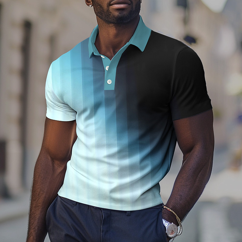 Men's Geometric Polo Shirts Golf Shirt Short Sleeve Polo Shirts Collared Shirts Business Casual WorkWear Formal Wear Festival Wear Buttons 3D Print Spring Summer Blue Green