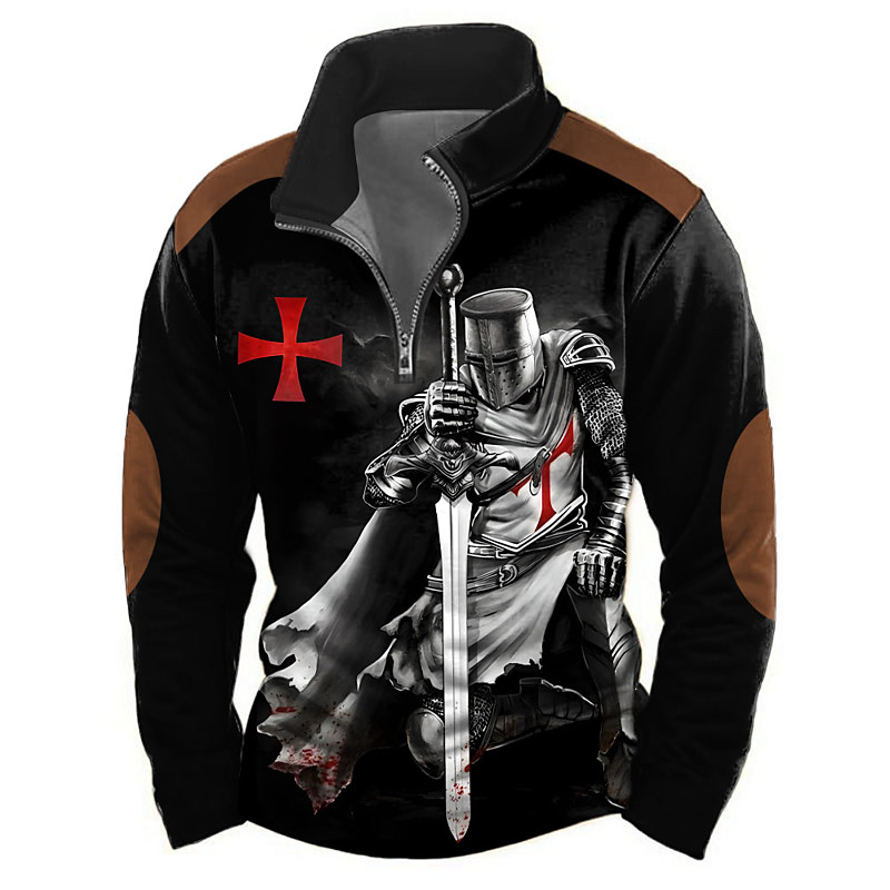 Men's Knights Templar Sweatshirt Casual Long Sleeve Stand Collar Party Club Red Blue Gray 3D Print Quarter Zip Fall Winter Designer S M L XL XXL 3XL