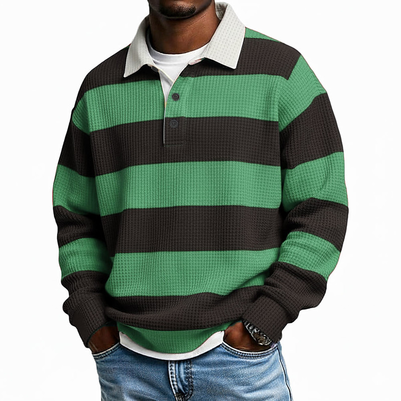 Men's Horizontal Stripes Polo Rugby Polo Textured Long Sleeve Polo Shirts Lapel Sportswear Casual School Athleisure Daily Wear 3D Print Spring Fall Winter Red Dark Green Orange