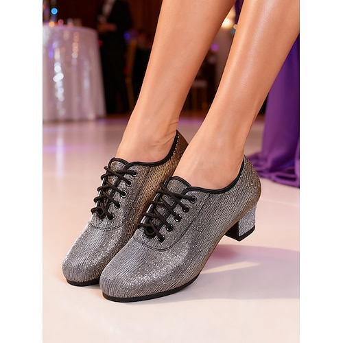 Damen-Lateintanzschuhe in Gold und Silber – professionelle Schnürschuhe für Gesellschaftstänze, Tango und Jazz mit Farbverlauf in Metallic-Optik und niedrigem Absatz für Auftritte oder Training