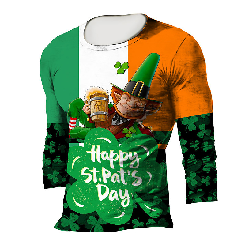St.Patrick's Day Men's T shirt 3D Print Cartoon Graphic Saint Patrick Day Crew Neck Street Daily Print Long Sleeve Tops Basic Designer Big and Tall