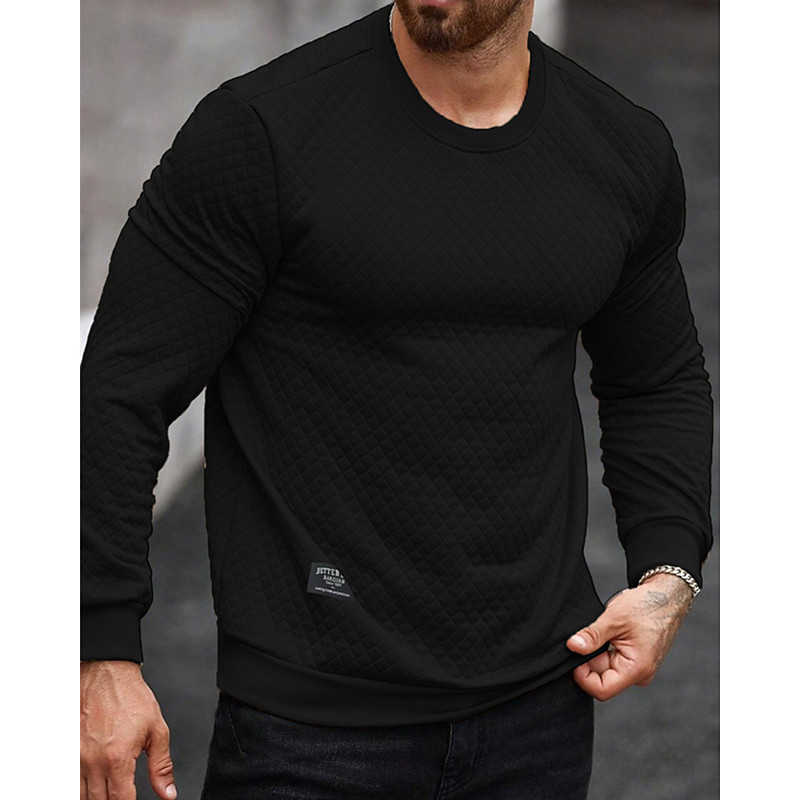 Men's Sweatshirt Black Khaki Dark Gray Coffee Crew Neck Plain Jacquard Ribbed Textured Knit-texture Sports Outdoor Daily Holiday Polyester Streetwear Basic Casual Spring Fall Clothing Apparel