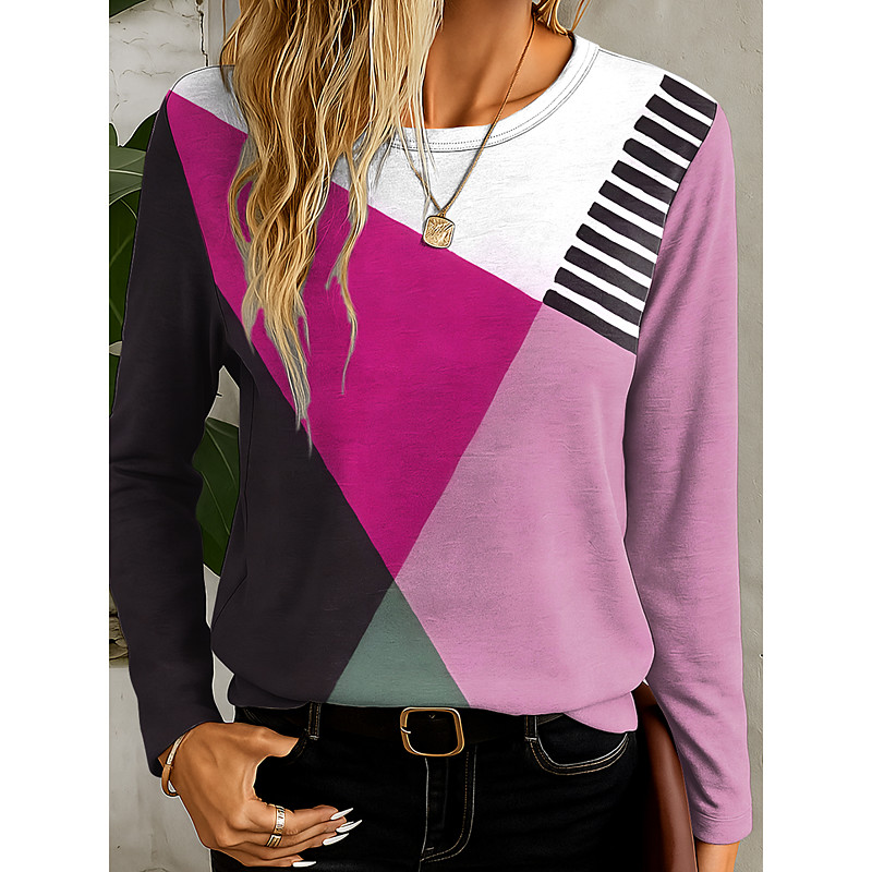 Women's T Shirt Graphic Geometry Vintage Stylish Casual Long Sleeve Crew Neck Regular Tops Daily Print Yellow Blue Purple Green Spring Fall Winter