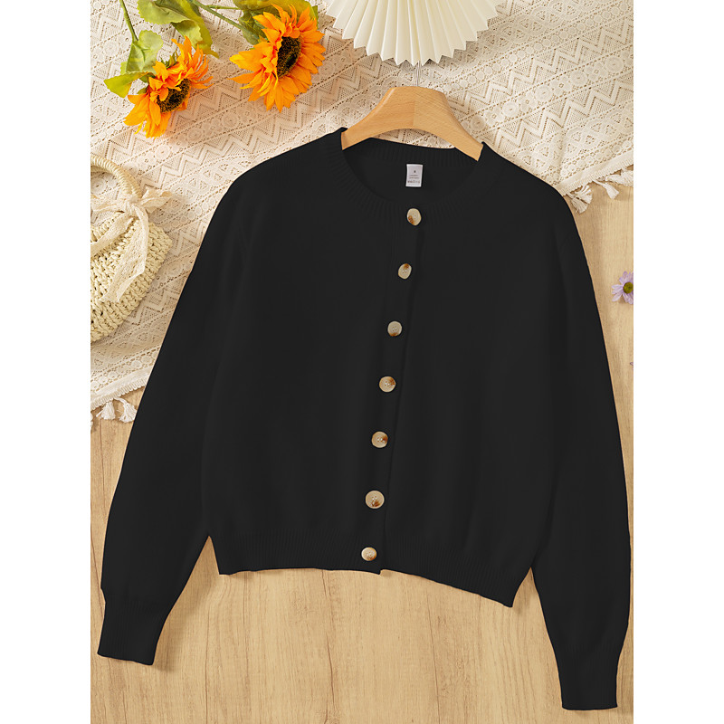 Women's Cardigan Elegant Vintage Cute Solid Color Ribbed Crew Neck Buttons Knitted Long Sleeve Regular Tops Knit Formal Outdoor Home Black Red Spring Fall