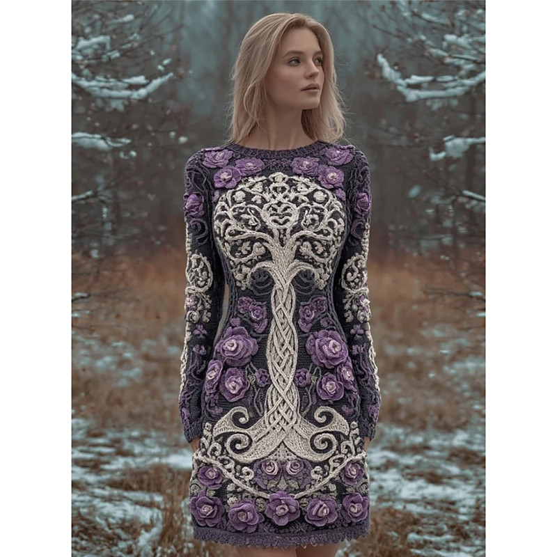 Women's Mini Dress Sweater Dress Vacation Casual Boho Daily Holiday Going out Slim Graphic Long Sleeve Crew Neck Black Purple Orange Green Fall Winter