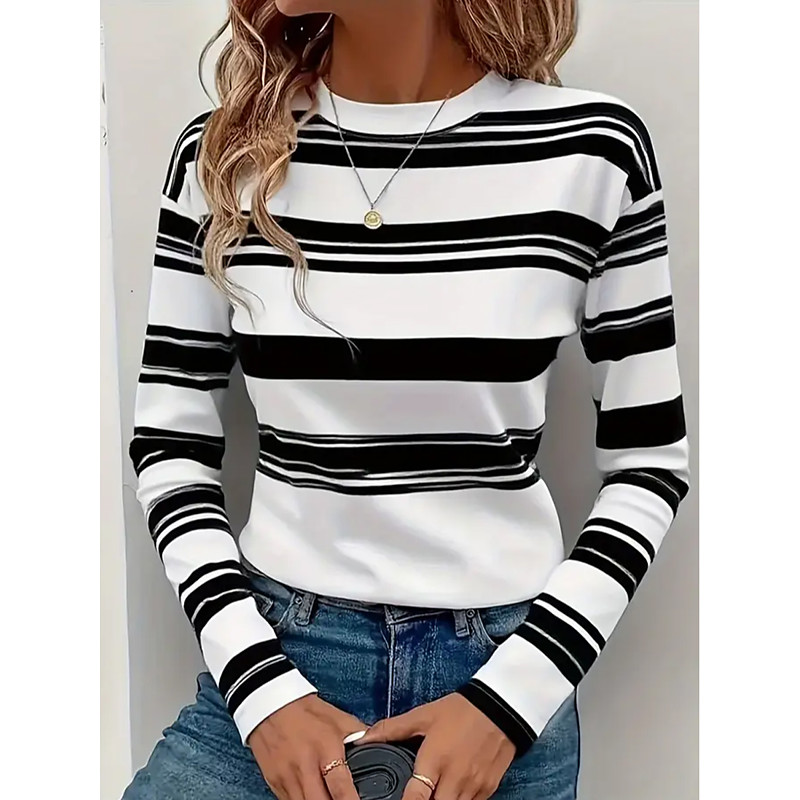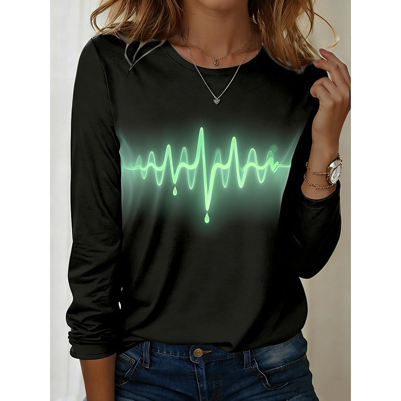 Women's T shirt Crew Neck Long Sleeve Tunic Ombre Geometric Modern Casual Regular Tops Daily Weekend Print Blue Orange Fall Winter