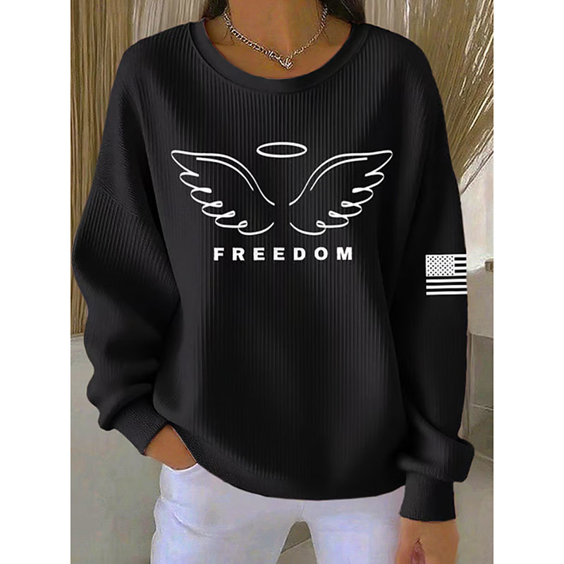 Women's Pullover Graphic Letter Warm Classic Casual Long Sleeve Crew Neck Regular Tops Casual Home Street Print Blue Black White Red Spring Fall Winter