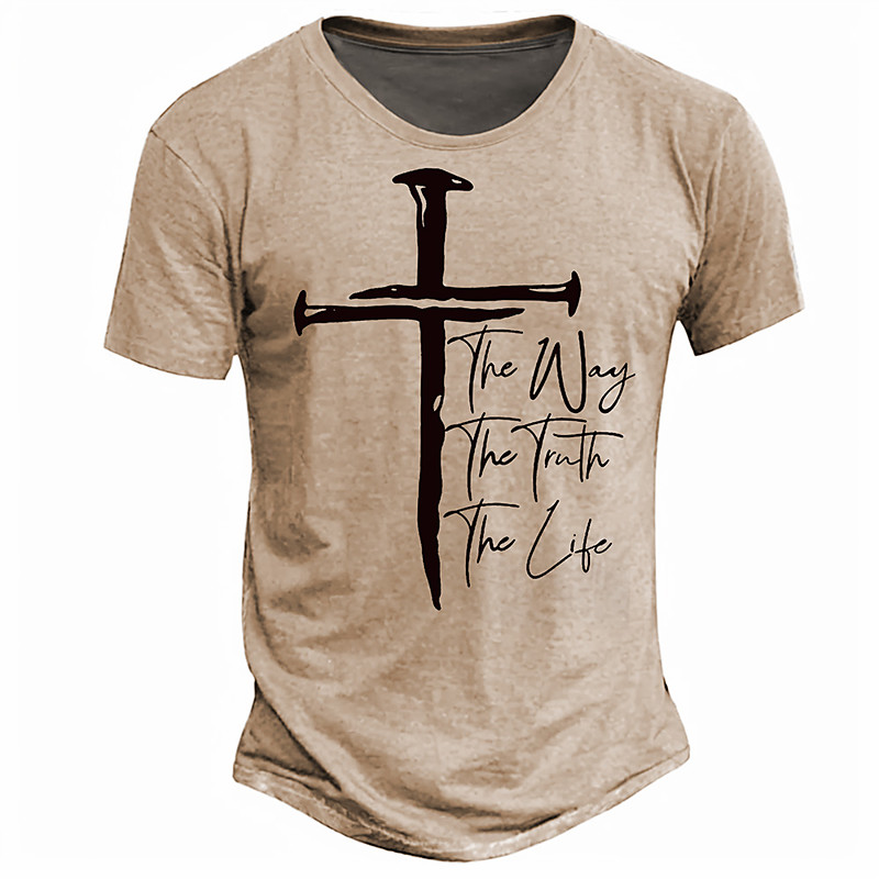 Men's Cross T Shirt Short Sleeve T shirt 3D Print Crew Neck Shirt Retro Vintage Casual Street Casual Light Blue Khaki Gray Spring Summer Clothing Apparel S M L XL XXL XXXL