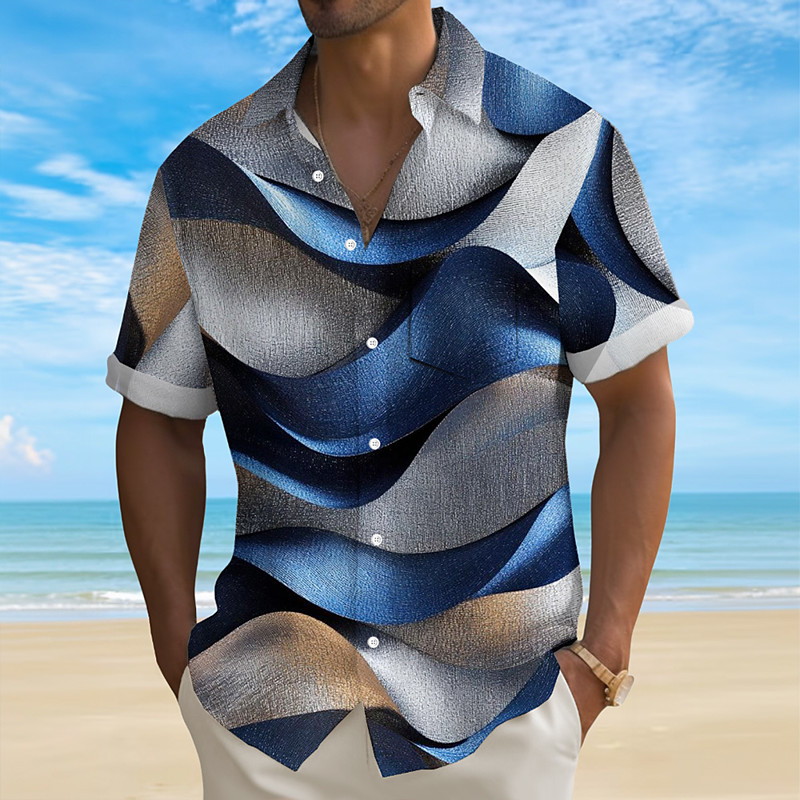 Men's Gradient Waves Color-blocking Shirt Summer Shirt Button Up Shirt Short Sleeve Fashion Casual Outdoor Vacation Dailywear Summer Spring Turndown 3D Print Collared Shirts Front One Pocket Blue Gray