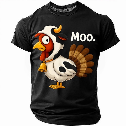 maglietta divertente del tacchino del Ringraziamento, pollo dei cartoni animati in costume da mucca, umorismo muggito, carino design eccentrico per il divertimento delle vacanze, abbigliamento